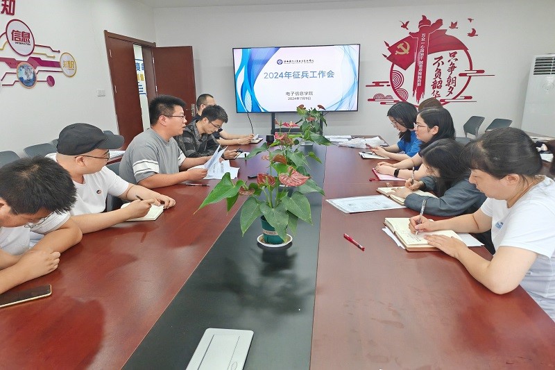 为积极响应国家征兵号召,深入宣传大学生应征入伍政策,进一步做好学生征兵宣传工作,2024年7月9日电子信息学院召开了2024年征兵工作会。会议由电子信息学院党总支书记赵鹏主持,全体辅导员参与本次会议。