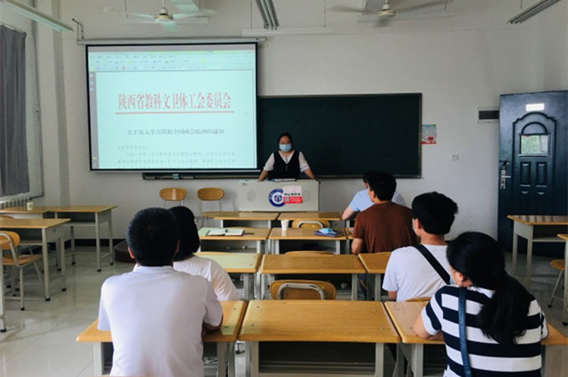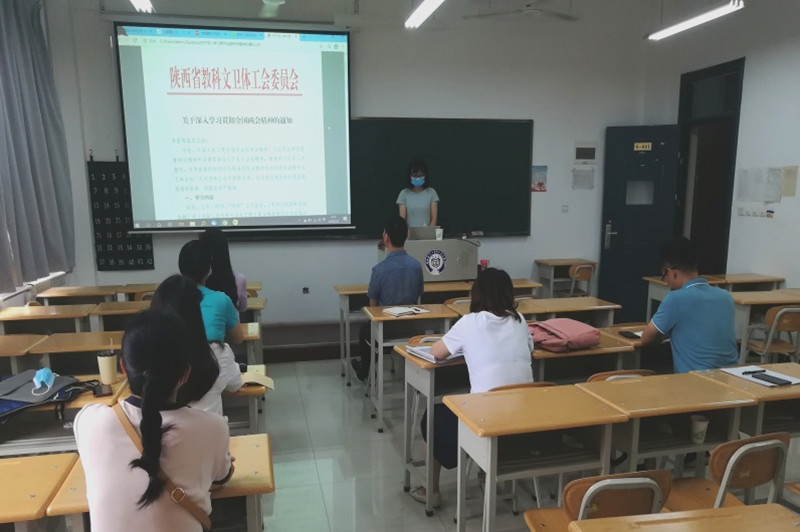 活动首先学习了陕西省教科文卫体工会委员会《关于深入学习贯彻全国两会精神的通知》。