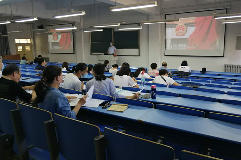 首先,全体教职工深入学习了2020年全国“两会”精神,观看了习近平总书记时政微视频《最深的牵挂》、《和人民在一起》、《决战倒计时》以及《习近平总书记在两会上的新语新论》等,接着,大家学习了习近平总书记在中央政治局第二十次集体学习中的讲话,同时观看视频《法制的信仰》,通过学习,全体教职工充分认识颁布实施民法典的重大意义。