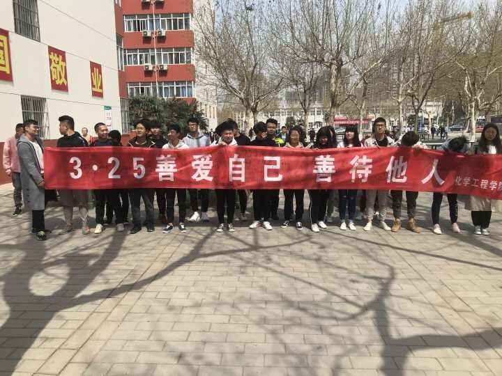 2019年3月25日中午化学工程学院心理部在二号宿舍楼东面举行了以“善爱自己 善待他人”为主题的325横幅签名活动。此次活动旨在倡导大学生善待自我、关爱自我,引导学生要以发自内心的爱与和谐来善待和关爱他人及社会,共同构建美丽和谐校园。