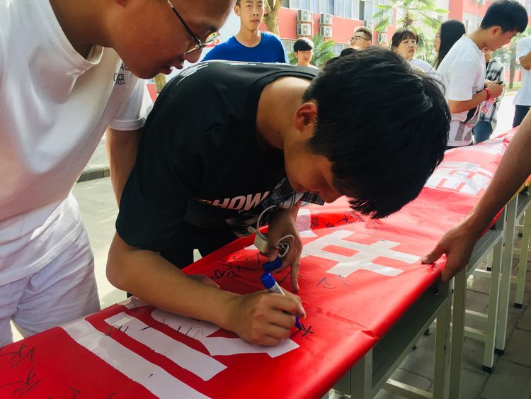 2019年4月25日下午化学工程学院学生会学习部和建筑与热能工程学院学生会学习部联合在二号宿舍楼东面举行了以“点燃读书激情 共创书香校园”为主题的横幅签名活动。此次活动旨在倡导大学生多读书,读好书,共同构建美丽和谐校园。