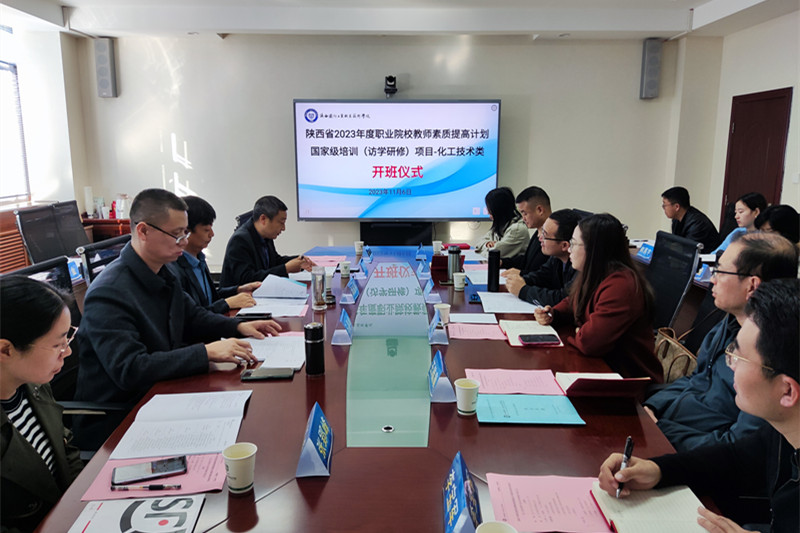 2023年11月6日,陕西省2023年度职业院校教师素质提高计划国家级培训项目-访学研修(化工技术类)开班仪式在我校北校区举行。我校教师发展中心主任胥航军、化工学院院长张军科、所有参训教师及化工学院专业带头人参加了开班仪式,开班仪式由化工学院办公室主任马喜峰主持。
