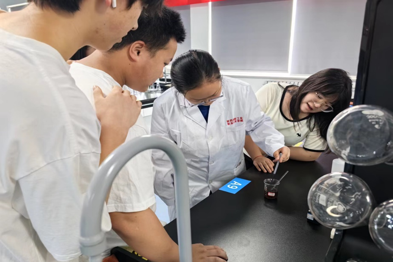在科普实验模块,科普老师在分析室为同学们表演了“魔壶”、“变色的碘伏”等有趣的科普实验,并讲解了其中的化学原理。大小朋友们对神奇的化学现象惊叹不已,并亲手实践。