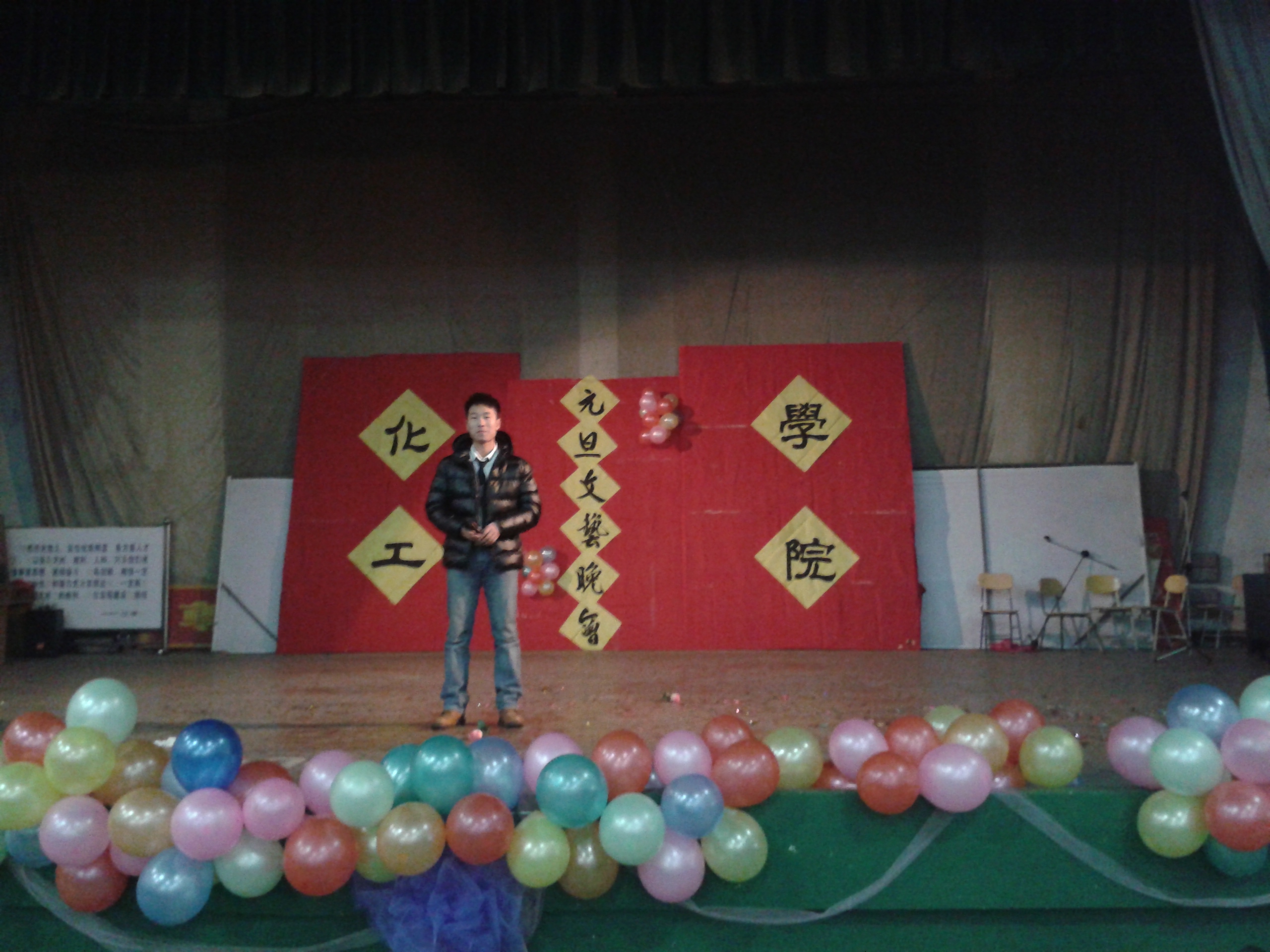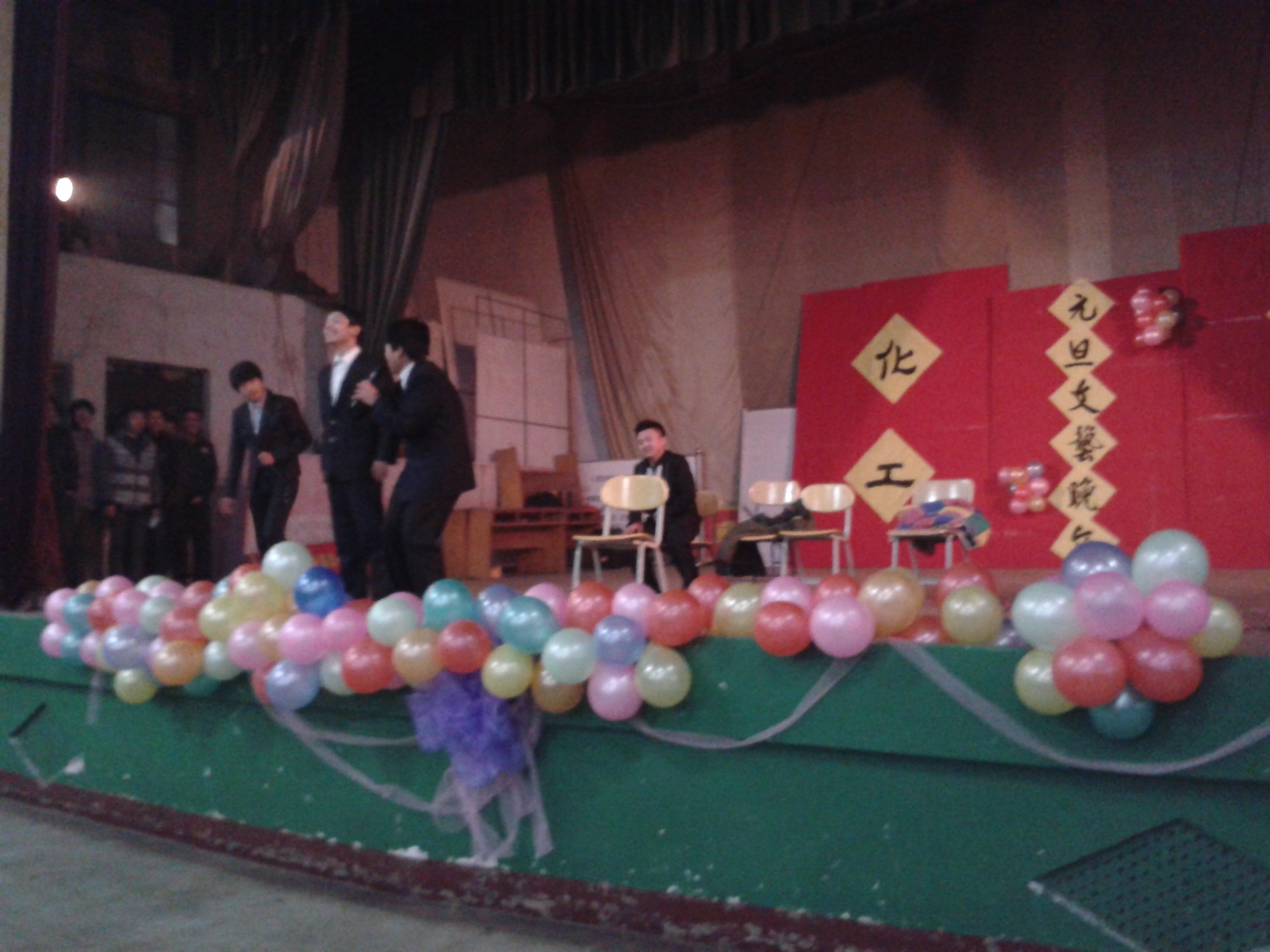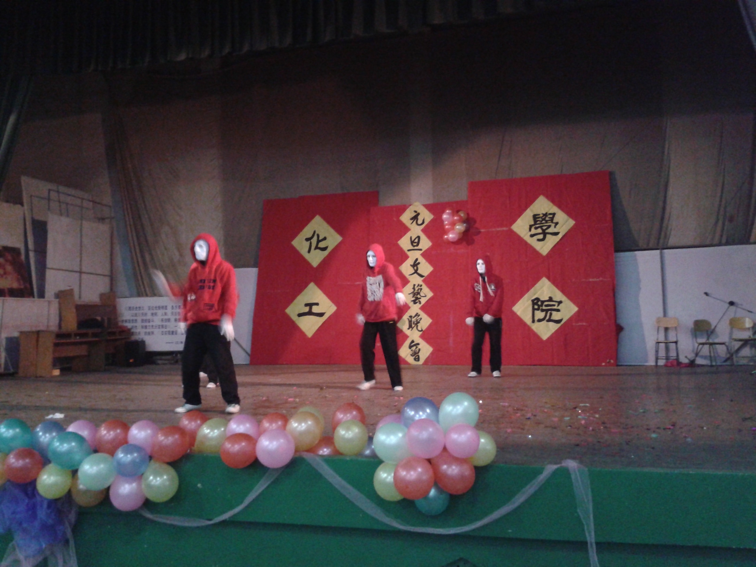 2012年12月27日,在我院南区餐厅舞台隆重举行“化工Style跨年文艺晚会”出席这次晚会的领导和嘉宾有:化学工程学院党总支书记张向阳老师、学生科科长郑继忠老师、学生管理干事孟龙老师、院团委艺术指导中心主任常继红老师,以及化工学院各班班主任老师。学生代表有建筑与热能工程学院学生会主席、基础课部学生会主席。