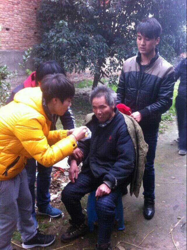 在冽洌寒风中为他送去一份温情,考虑到老人的年龄和生活状况,此次志愿者活动放弃了以往单纯的打扫卫生的活动形式,而是采用了一种特殊方式—聊天、喂老人吃东西、表演节目等,为老人带去久违的欢笑,虽然老人的听力不好志愿者们需要重复好几遍所说的话,但是也丝毫没有减轻志愿者们的热情,院子里充满着欢声笑语。