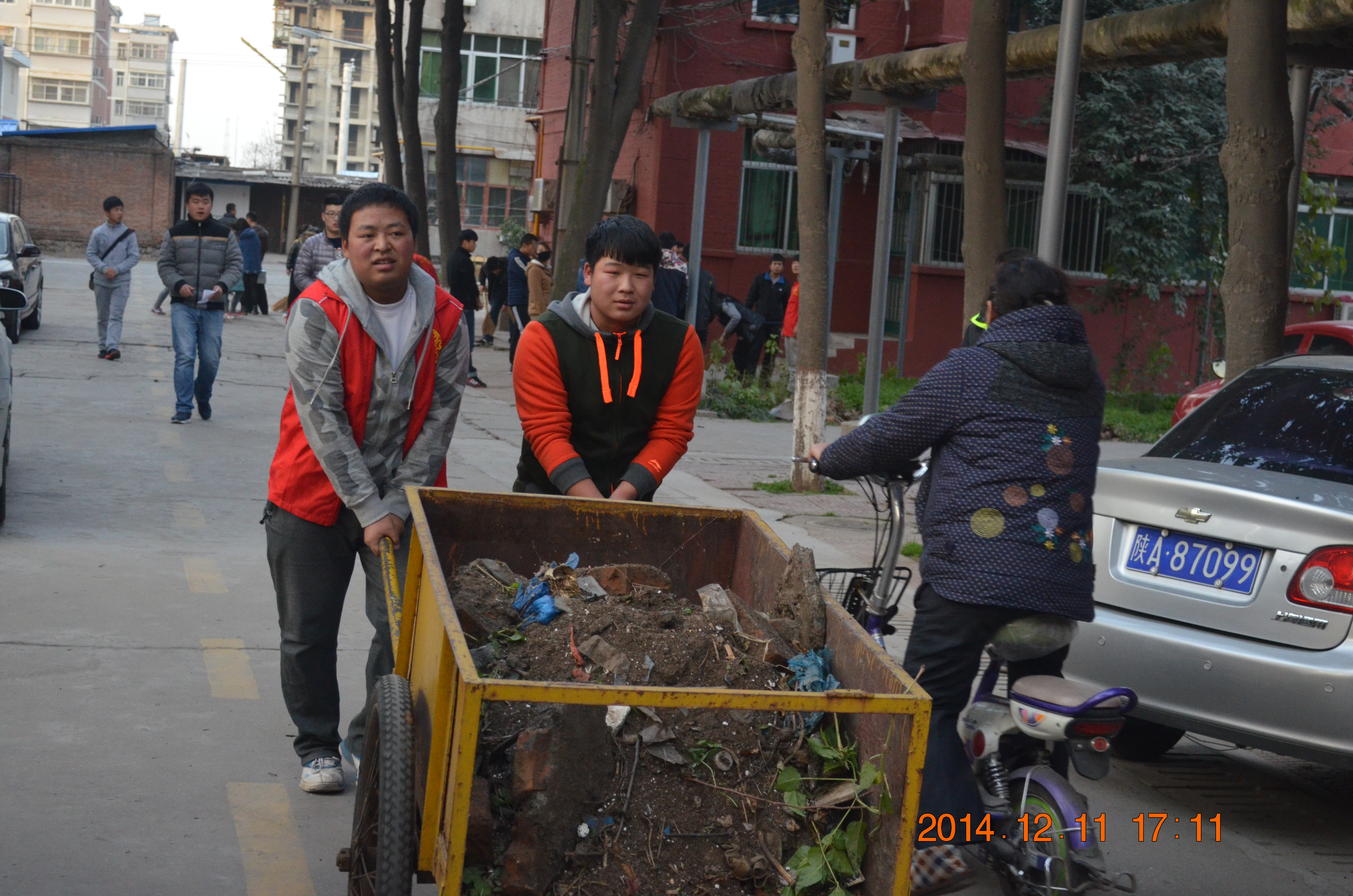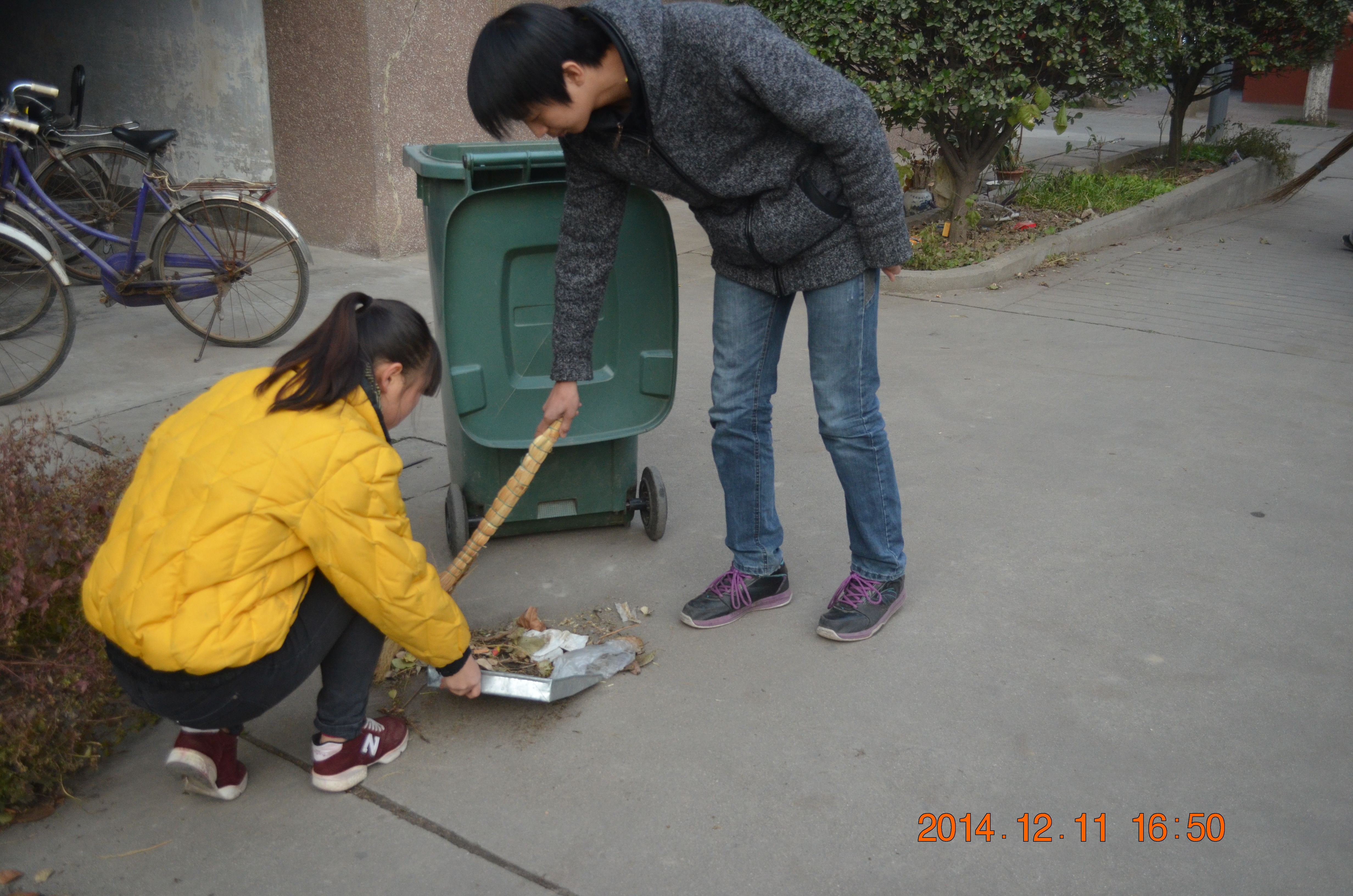 12月11日16:30分时,在化学工程学院学生会组织下,由各班同学组成的志愿者团队对我校教职工家属院进行大扫除。各个班级相互配合,发扬不怕苦不怕累不怕脏的“三不怕”精神,大家尽心尽力,听从安排,主动去干那些脏活累活,在近两个小时内终于把家属院打扫的干干净净、焕然一新。我们的志愿者得院居民的一致好评,甚至有一些热心的爷爷还邀请同学们吃水果........使得这次志协活动乐意无穷.