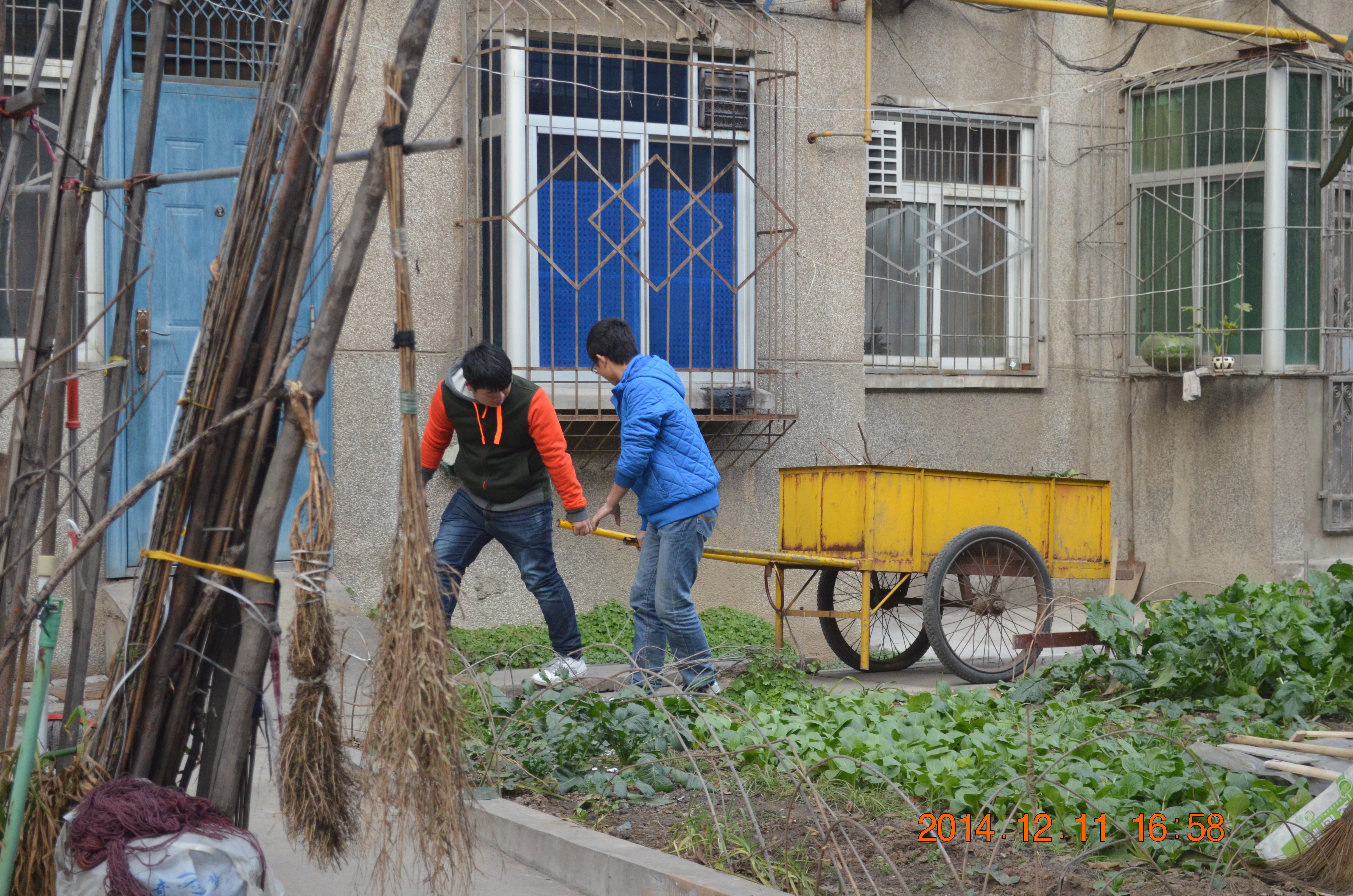 在凛冽的寒风中,来自化学工程学院的青年志愿者们忙碌的身影出现在职公家属院里的各个角落。