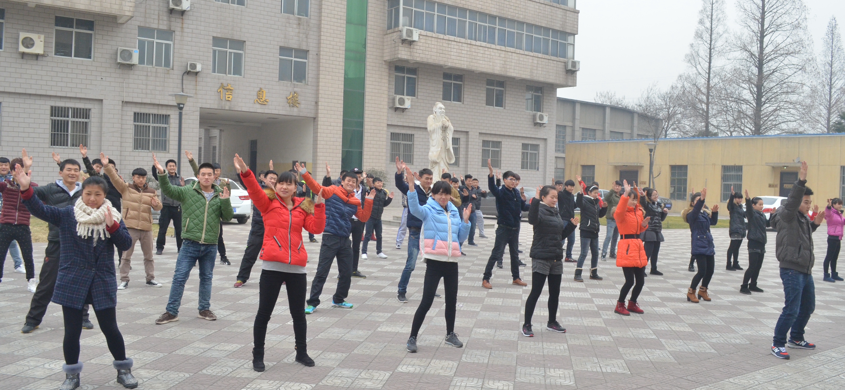 进入12月份后,天气越来越冷,为应对寒冷天气,增强学生体质,提高学生抵御疾病的能力,化学工程学院组织学生每天16:30,在南校区信息楼广场开展以“激情飞扬、健身你我”为主题“大学生健身舞”活动。