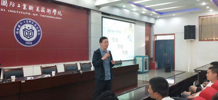 活动伊始,主持人用ppt展出了部分大学校园里资源浪费现象的图片,并由学生代表讲话让全体学生了解到节粮、节水、节电的重要意义并加强全体学生在生活中对节粮、节水、节电的认识,从而能有所领悟并投入到实际行动中去并发出“节粮、节水、节电,从我做起”的倡议,随后,学生科科长权华老师呼吁我院师生积极行动起来,以勤养志,以俭修德,从小事做起,从自身做起,以主人翁的精神投身于创建节约型校园的活动之中。