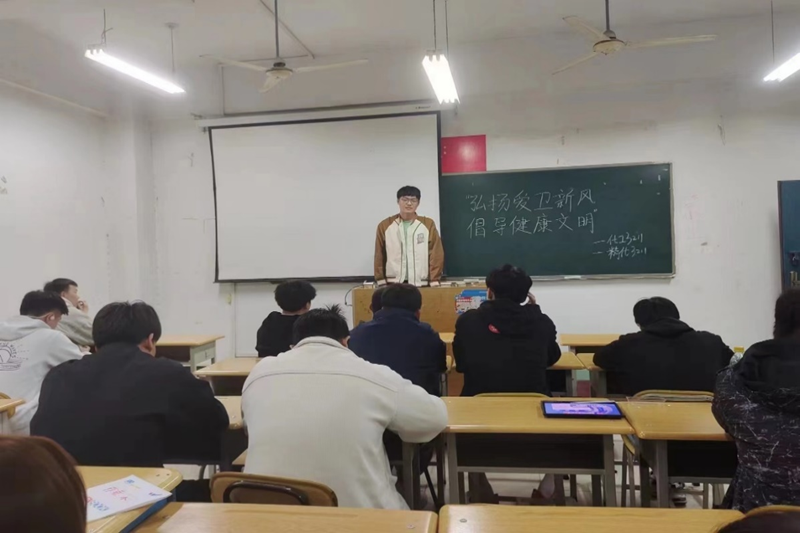 2023年4月2日化学工程学院举办“弘扬爱卫新风,倡导健康文明”主题班会,强化广大师生卫生观念,教育引导学生广泛参与爱国卫生运动,提高学生共同改善生存环境的意识,宣传卫生科学知识,引导学生改变不卫生的行为,树立良好的卫生习惯。