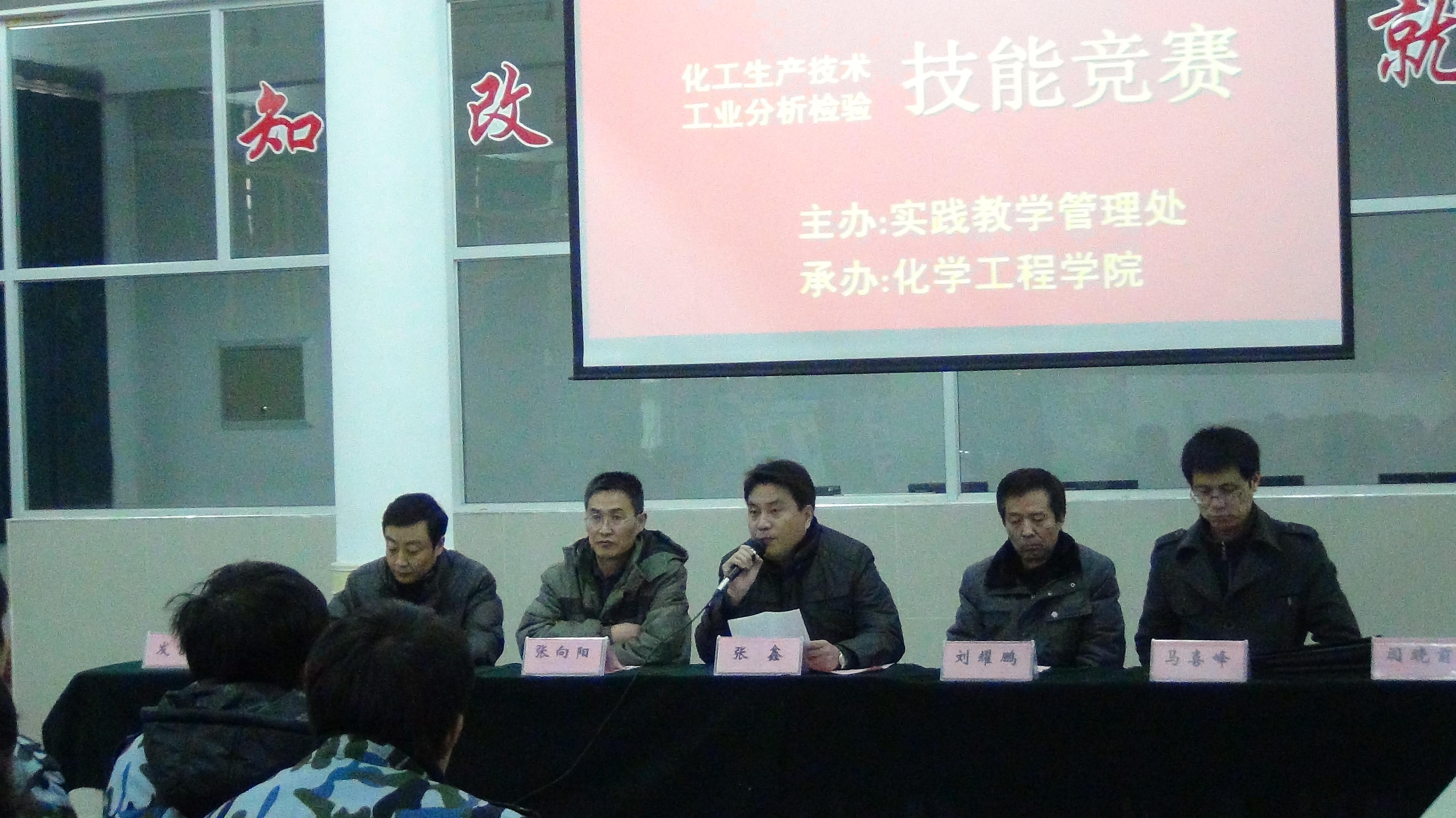为贯彻落实教育部《关于全面提高高等职业教育教学质量的若干意见》精神,进一步提高各专业学生的专业技能和工程实施能力,培养满足企业需求的高素质技能型人才,由实践教学管理处主办,化学工程学院承办的“2012年化学工程学院技能竞赛”于2012年12月27日在化学工程学院单元操作实训室隆重开幕。实践教学管理处处长张鑫、化学工程学院院长刘耀鹏、书记张向阳及化工学院相关教师出席了本次开幕式。开幕式由张向阳书记主持,张鑫处长致开幕词,刘耀鹏院长做了关于加强化工类技能竞赛的讲话,汤春妮老师及惠永辉同学分别代表裁判员和参赛选手发言,张向阳书记宣布大赛开赛。