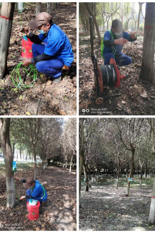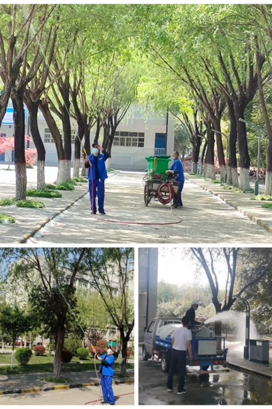 对全校的绿化树木进行排查,制定不同的病虫害预防、救治方案,组织绿化工进行浇水灌溉,防止树木水分流失,同时给病虫害树木输入营养液,保证绿化树木的健康成长。