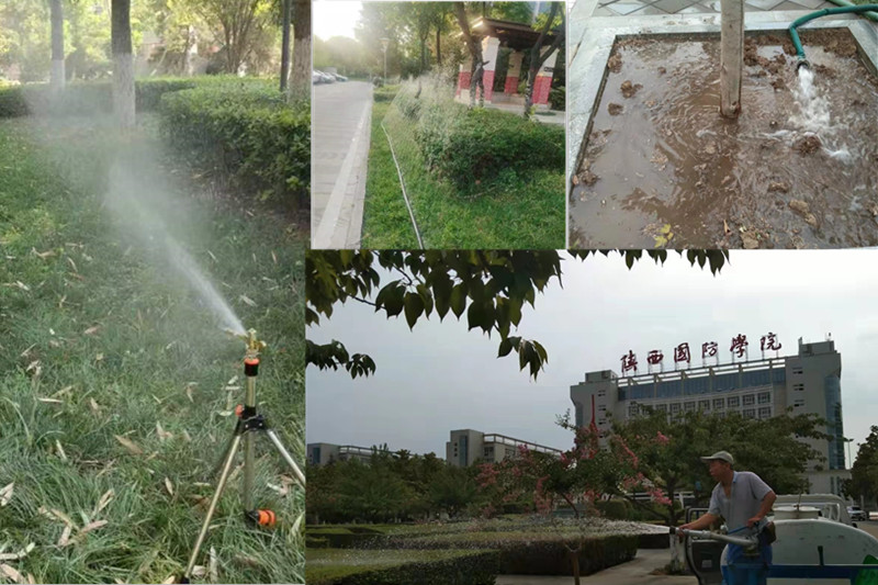近期,持续晴热,雨量较少,我校多处绿化苗木均出现了不同程度的旱情。为保证苗木正常生长,提高新栽苗木成活率,后勤处及时启动抗旱应急预案,组织物业公司绿化养护人员加班加点,做到抗旱不停步,浇灌无死角,确保校园绿化成果。