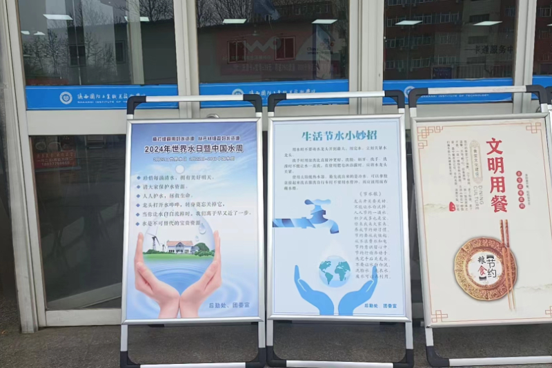活动伊始,校园内便挂满了节水主题的宣传横幅,这些横幅悬挂在教学楼、行政楼及家属院的显眼位置,时刻提醒着师生们珍惜水资源,节约用水。同时,校园内各处也张贴了节水标语,以简洁明了的语言传递着节水的重要性。此外,志愿者还印制并发放了大量节水传单,详细介绍了日常节水技巧和节水知识,让师生们在日常生活中能够轻松实践节水行动。