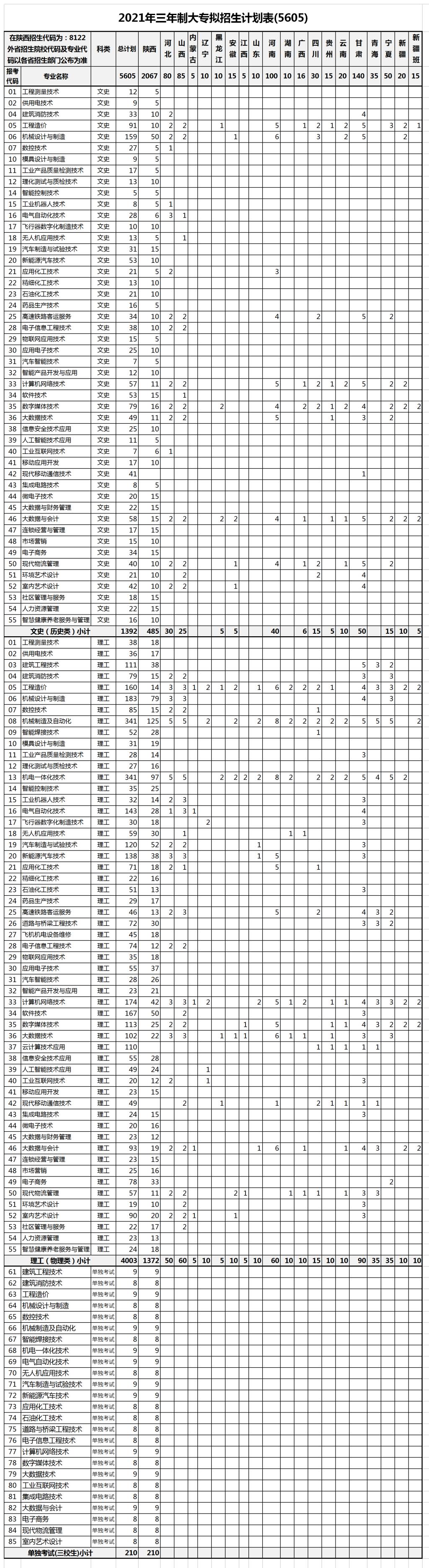 说明: 1.上表专业计划仅供参考,实际请以各省教育厅审核下达为准;