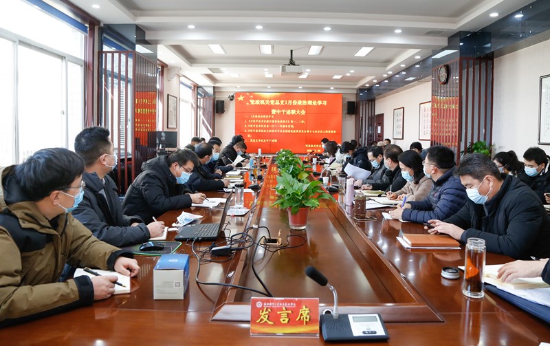 【党政机关党总支】2021年1月8日下午,我校党政机关党总支在图书楼第一会议室召开1月份教职工政治理论学习暨中干述职大会。会议由党总支书记殷兴光主持,党政机关党总支全体教职工参会。首先,会议集中学习了《习近平总书记教育重要论述讲义》第一、二讲内容,通过观看视频,领会了习近平总书记发表的二〇二一年新年贺词和在主持召开中央全面深化改革委员会第十七次会议上的重要讲话精神。通过学习,要求大家要全面把握习近平总书记关于教育的重要论述的科学内涵和精神实质,更好地武装头脑、指导实践、推动学校各项工作又快又好的发展。习近平总书记的新年贺词既饱含殷切深情,又发出豪迈宣示,温暖人心、催人奋进,激励着大家以更加昂扬的精气神,开创学校工作新局面。随后,党政机关党总支召开中干述职大会,殷兴光代表党政机关党总支对2020年度党总支工作进行总结汇报,党政机关党总支12名中层干部依次进行个人年度工作汇报。与会全体教职工认真听取了汇报,本着公平公正的原则,与会全体人员对12名中层干部的德、能、勤、绩、廉等方面进行测评。