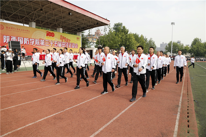 伴随着激昂的进行曲和铿锵有力的解说,11个各院部运动员代表队、15个工会分会代表队依次入场。方阵队伍中的师生神采奕奕、精神抖擞。各具特色的方阵展演融汇而成的正是整个陕西国防职院的非凡风采,展现了我校学生及教职员工积极向上,充满活力的精神状态。