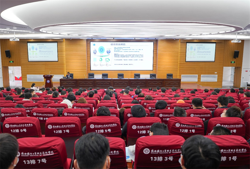 10月11日起,党委宣传部利用官方微信、校园广播、电子屏、宣传栏、网络安全专题网站、OA、QQ微信群等平台,充分发挥全媒体全平台传播优势,积极宣传第八届国家网络安全宣传周,贯彻落实习近平总书记网络强国思想,营造人人关注、人人参与、人人维护的网络安全环境。我校在校园教学和生活区布置“网络安全为人民网络安全靠人民”专题宣传展板,展出有关个人信息安全和数据安等全知识。线上线下组织学生积极开展网络安全主题班会,参加知识问答活动,并带领师生参观网络安全博览会完成研学活动。联合鄠邑区公安局在校内设立展位进行网络安全宣传,积极推送反诈APP,并发放宣传手册2000余份。学校还邀请到中国联通公司西安鄠邑区分公司总经理丁虎迅为师生做网络安全教育主题讲座。计算机与软件学院师生深入石井街道下庄社区,展开“网络安全宣传防诈骗讲座”。