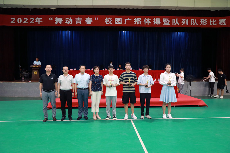 2022年6月21日下午,由学校体育运动委员会主办,军事体育部承办、校团委协办的2022年“舞动青春”广播操暨队形队列比赛在大学生活动中心成功举办。校长刘敏涵、副校长孟繁增、二级院部相关负责人及10支代表队共300余名师生参加本次活动。本次活动由军事体育部部长王茂利主持。