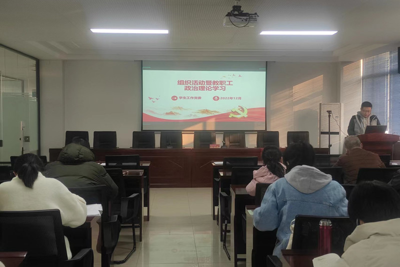 【基础课党总支】根据陕国职党宣〔2022〕29号文件《关于2022年12月教职工政治理论学习暨组织活动安排的通知》相关要求,为进一步加强基础教职工政治理论学习,切实提高教职工政治素质和理论水平,基础课党总支于2022年12月8日在北区5-607语音室以线上线下的方式开展12月教职工政治理论学习,会议由党总支书记权华主持。