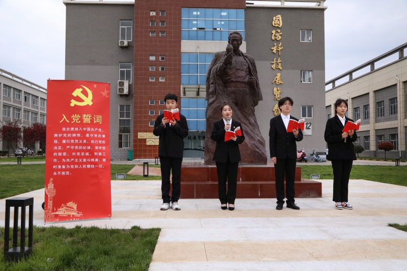 随后,四位学生党员代表朗诵了《把一切献给党》“入党”章节节选,张卫平同志与杨晓平同志一同向吴运铎同志雕像敬献花篮,寄托对革命先烈的无限哀思,表达了对革命先烈的缅怀与“把一切献给党”精神的敬意。最后,由新利体育官方网站党委书记陈正权同志领誓,全体党员齐立运铎同志像前,重温入党誓词。活动结束后,大家一同前往国防展馆红色实践教学基地参观学习。