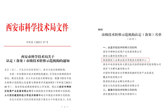 近日,西安市科技局印发了《西安市科学技术局关于认定(备案)市级技术转移示范机构的通知》(市科发〔2023〕67号),为进一步加强西安市技术转移机构建设,引导技术转移机构市场化、规范化发展,壮大专业化技术转移队伍,根据《西安市技术转移示范机构认定备案与绩效考评实施细则》(市科发〔2023〕40号),结合科技成果转移转化工作实效,我校技术转移中心等9家机构被认定为西安市技术转移示范机构。