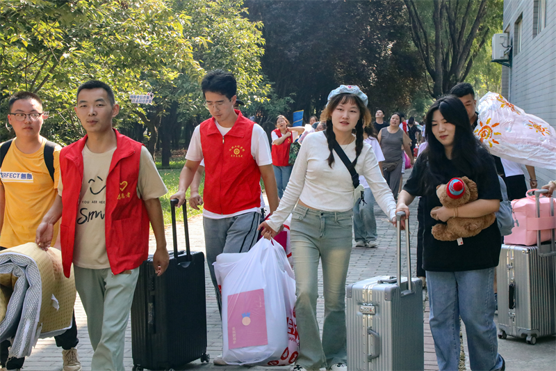学校处处是热情服务新生的志愿者,帮同学们搬运行李、引路答疑、提供咨询,满眼满心是对新生的欢迎和期盼。他们面带微笑,耐心细致地为学生家长提供服务。在报名结束去公寓的路上,志愿服务的学生与新生及家长积极交流,向他们介绍学校及二级学院的特色,一行人其乐融融,场面和谐,让新生感受到了陕西国防职院这个新家的温暖。