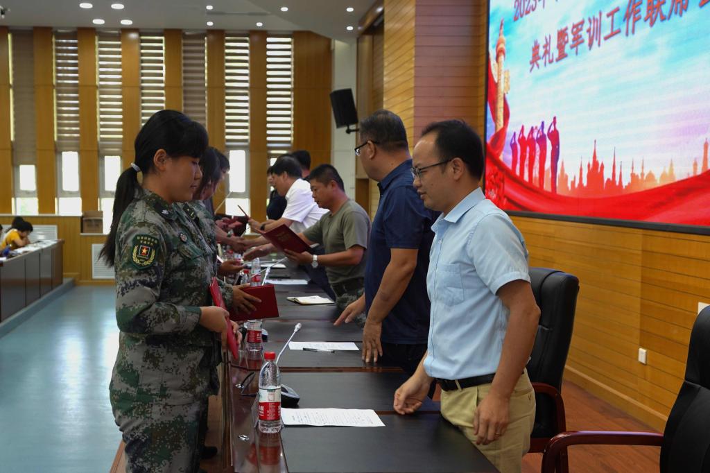 校长刘敏涵代表学校向承担我校2023级学生军训工作的全体教官表示热烈的欢迎和衷心的感谢,向参加军训工作的老师表示亲切的问候。他对军训工作提出了希望和要求:一是全体承训教官要规范训练方法,确保训练效果,要遵循军训规律,结合学生特点,因地因情因材施教,科学施训;二是全体承训教官要强化榜样引领,做到言传身教、以身作则,要坚持“塑形”与“塑魂”相结合,用军人优秀的品质影响学生,引领学生成长;三是全体参训老师要提高政治站位、善于担当有为,要全程参与军训;四是全体参训人员要突出协同配合,凝聚强大合力,形成共同努力、共同进步,共同发展的良好局面;五是全体参训人员要筑牢安全意识,守住稳定底线,做好军训期间的安全防范工作,确保今年军训工作安全圆满完成。