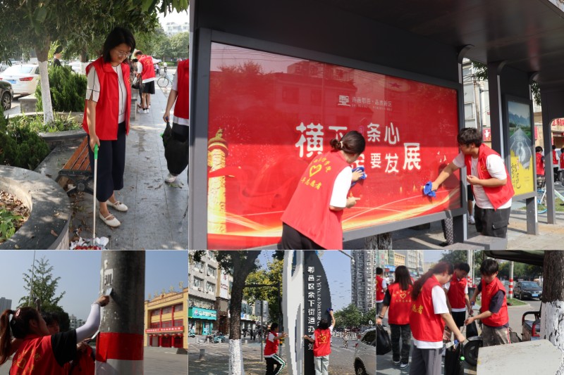 为深化大学生社区实践活动,探索常态化组织大学生到社区开展志愿服务、社会实践的工作模式,9月8日上午,18新利苹果客户端与鄠邑区余下街道团工委联合开展“青春进社区·基层添活力”高校社区结对共建携手推进基层治理暨青春志愿服务助力城市精细化管理活动。鄠邑区余下街道党工委副书记詹涛、学校团委书记张钊、余下街办纪工委书记郑鑫,团委办公室主任刘伟、余下街办民政办主任马廷武、各二级学院团总支、余下街道各社区书记、40余名志愿者代表参加此次活动。