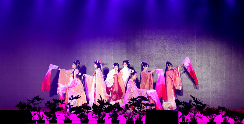 第三篇章是谱·时代华章。机械工程学院选送,大学生艺术团带来的舞蹈 《舞动青春》炫酷洒脱,展现了青春与活力;电子信息学院选送,蒹葭汉服社带来的汉服走秀《江山如画》展现了中国的传统文化自信与魅力;汽车工程学院选送,大艺团操舞协会带来的舞蹈表演《次仁拉索》用优美的舞姿祝福伟大祖国繁荣昌盛,我校事业更加辉煌。