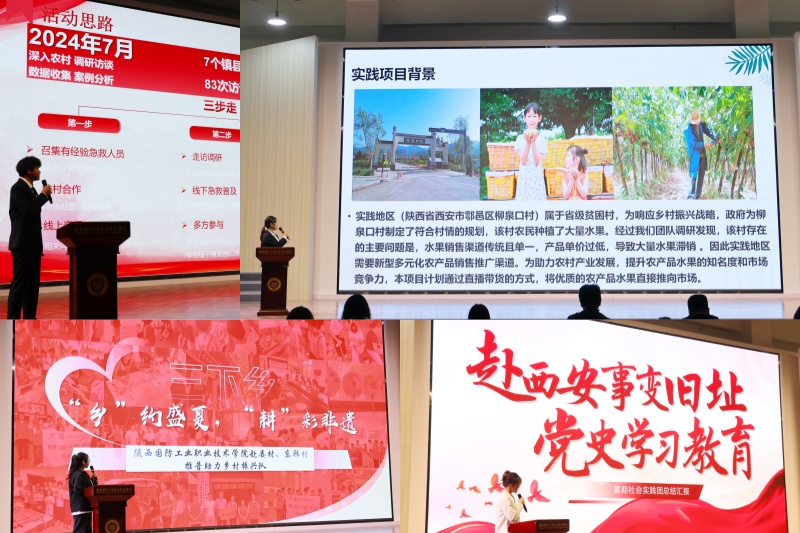 会上,26支实践团队以PPT、视频等多形式进行成果汇报,分享实践经验和心得体会。从前期的精心策划,到活动的顺利推进,再到深入的宣传报道,每一个环节都凝聚着团队成员的汗水与智慧,彰显着国防青年学子的责任与担当。