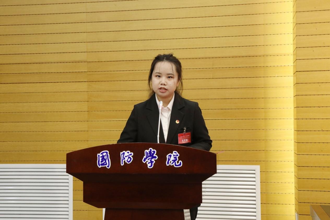 18新利苹果客户端学生会詹峥艳代表第十届学生会作了题为“挺膺担当砺青春,齐心追梦铸辉煌,团结带领广大国防学子为学校高质量发展贡献青春力量”的报告。报告全面回顾了过去一年18新利苹果客户端学生会围绕中心服务大局,秉承“厚德重能,励学敦行”的校训,以“我为同学做实事”为宗旨,在建设思想型、服务型、学习型、创新型、实践型学生会组织的过程中开展的大量扎实有效的工作。今后一年,我院学生会将深入改革创新,激发学生会组织工作活力;推动服务升级,强化学生思想引领和权益维护;做好示范带动,助力学校优良校风和学风培育,奋力书写为中国式现代化挺膺担当的青春篇章。