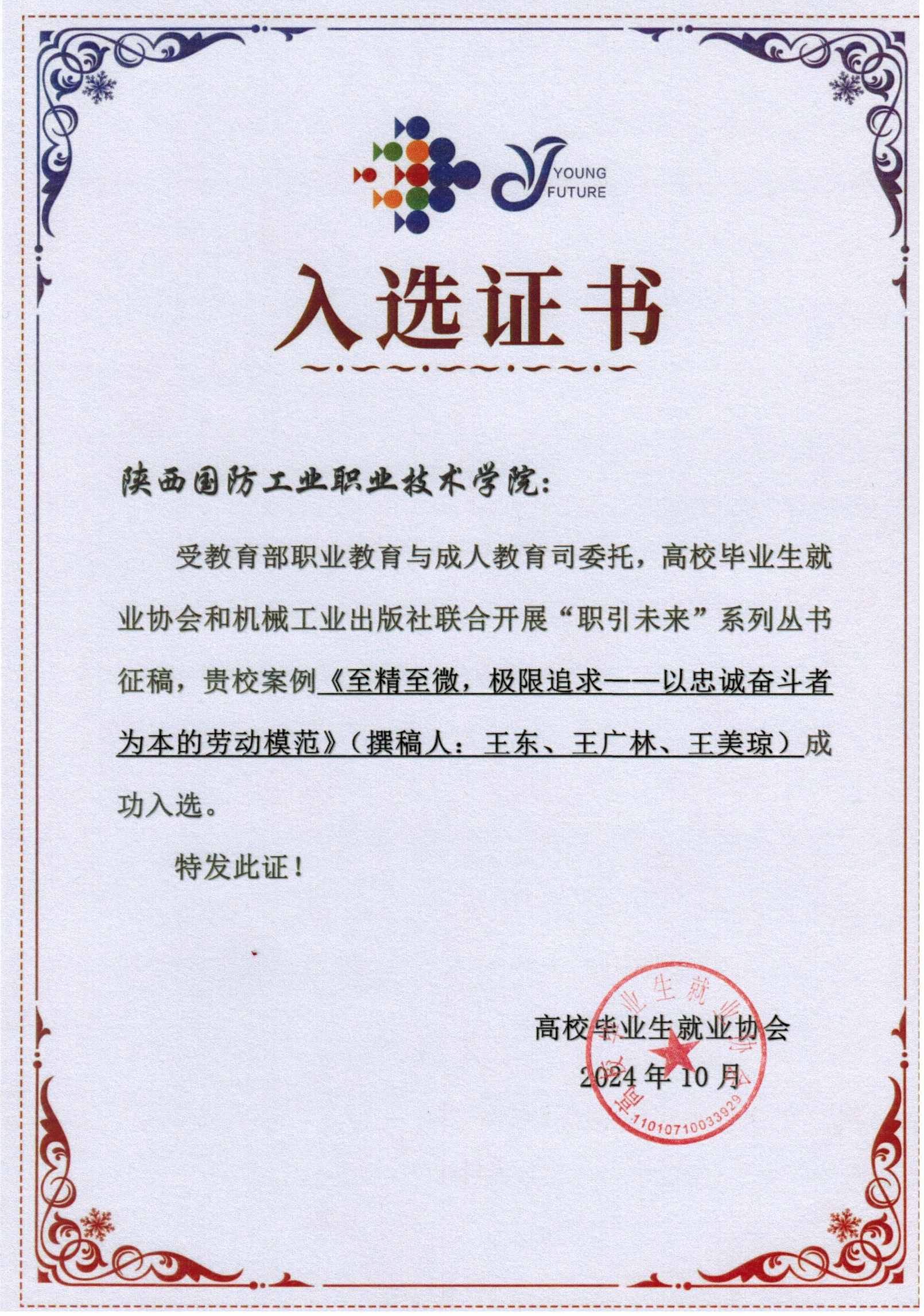 受教育部职业教育与成人教育司委托,在协会指导下,职教工委会和机械工业出版社联合启动了“职引未来”丛书征稿活动,87家单位97个案例入编首册案例。我校推荐案例《至精至微,极限追求——以忠诚奋斗者为本的劳动模范》成功入选。