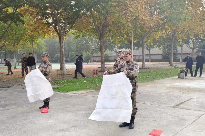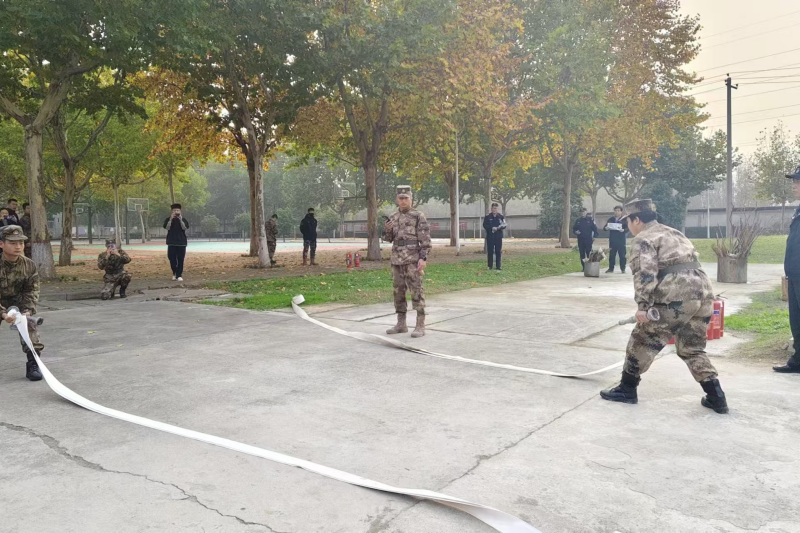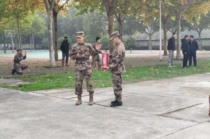 活动围绕“全民消防 生命至上”主题,内容主要包括消防安全基础常识培训、灭火器、消防水带的使用培训、疏散逃生演练等三个方面,旨在让师生了解预防火灾、发生初火时的扑救方法及应急处置措施。演练开始,鸣响警笛,参与演练人员用湿毛巾捂住口鼻、弯腰,按安全通道指示迅速疏散逃生,到达指定安全地点集合,演练负责人清单人数。集合完毕后,我校军魂学社及预征班负责人普及了消防安全常识,介绍了灭火器的种类,演示了灭火器、消防水带等消防器材的使用方法,并对在场人员进行了灭火器及消防水带的使用实操训练。