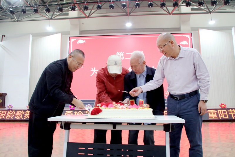 我校副校长刘少阳,余下街道党工委副书记张八铁与老龄代表方宏计、张志远二位老师一起切开生日蛋糕,张八铁代表余下街道党工委对本次活动的开展致以热烈的祝贺。集体生日会后,由退休职工和社区居民组成的文艺社团表演了舞蹈、广场舞、诗朗诵、旗袍秀、柔力球、太极养生仗、乐器演奏、演唱等精彩纷呈的节目,活动既丰富广大老同志的精神文化生活,提升老同志们的幸福感和归属感,让老同志们切实感受到“老有所乐、老有所依”,又营造了欢乐和谐的节日氛围,深受大家的欢迎。