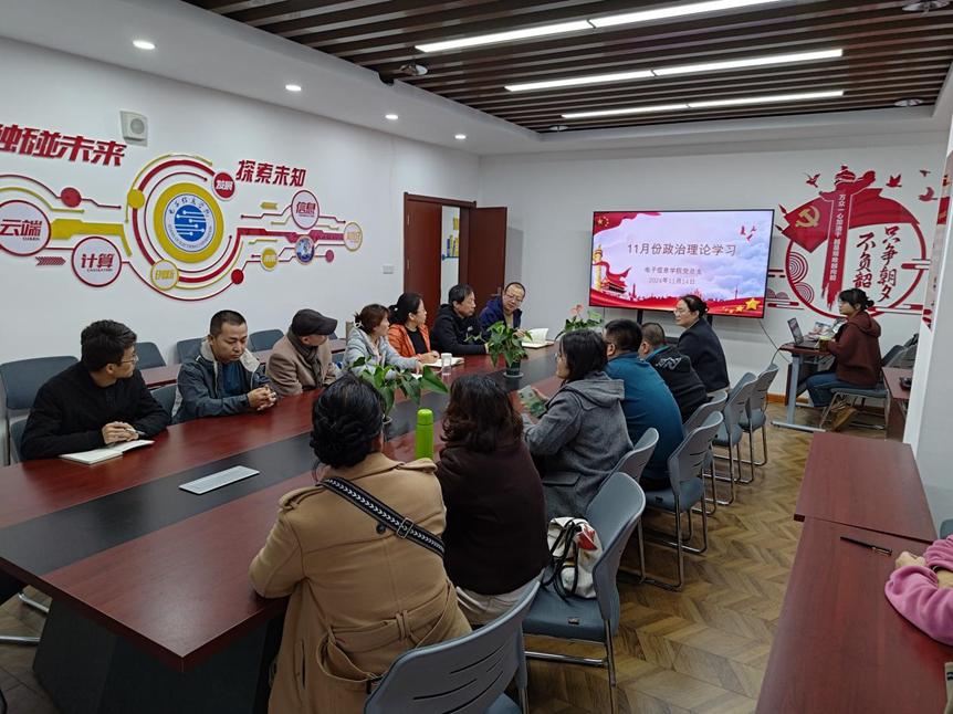 【电子信息学院党总支】根据陕国职党宣〔2024〕19号文件《关于2024年11月教职工政治理论学习暨组织活动安排的通知》要求,11月14日下午16:30,电子信息学院党总支在博远楼602室召开了11月份教职工政治理论学习会议,会议由电子信息学院党总支书记赵鹏主持,全体教职工参加了会议。