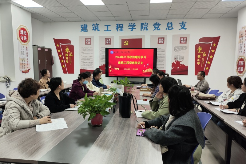 【建筑工程学院党总支】按照陕国职党宣〔2024〕19号文件《关于2024年11月教职工政治理论学习暨组织活动安排的通知》要求,建筑工程学院于2024年11月14日下午在党员之家召开了本月教职工政治理论学习会议。党总支书记强卫印主持会议,全体教职工参加会议。