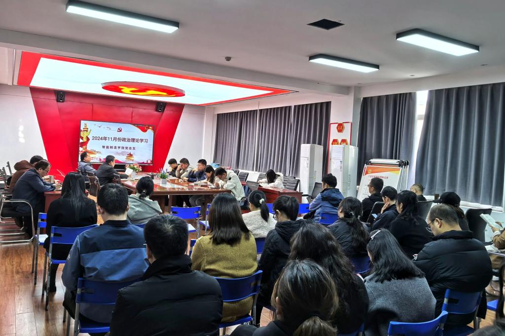 【人工智能学院党总支】为进一步加强教职工政治理论学习,切实提高教职工政治素质和理论水平,落实《关于2024年11月份教职工政治理论学习暨组织活动安排的通知》(陕国职党宣〔2024〕19号文件)精神,11月21日下午,人工智能学院在8-208开展了11月份政治理论学习。本次会议由学院党总支书记张双琦主持,学院全体教职工共同学习、交流。