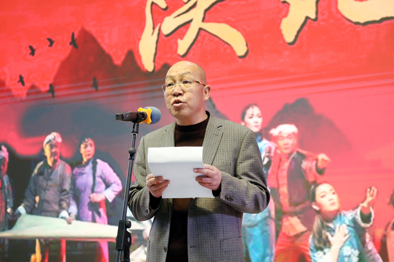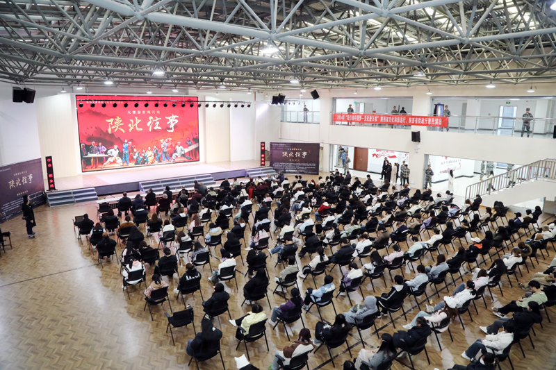 为深入学习贯彻党的二十届三中全会精神和全国教育大会精神,推进全面实施学校美育浸润行动,大力弘扬中华民族优秀传统文化,更好传承和保护非物质文化遗产,11月26日,由陕西省文化和旅游厅、陕西省财政厅资助的惠民演出项目——大型秦腔现代戏《陕北往事》在学校博远楼小剧场进行了两场演出,百年剧社三意社为师生们献上了一场文化盛宴。学校党委委员、副校长刘少阳出席活动并致辞,离退休职工、社区人员及各二级学院师生代表观看了演出,剧目表演获得了现场观众的一致认可与赞扬。