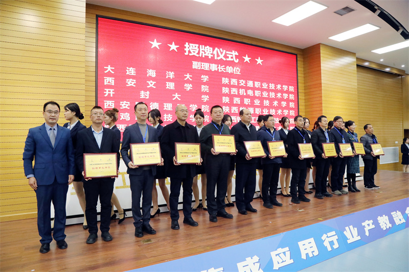 18新利苹果客户端副校长张永军、陕西科技大学吕文华、华航唯实副总周曙红等领导先后为到会的56家副理事长单位和32家常务理事单位授牌。