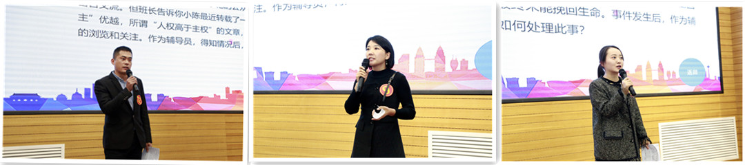 在案例分析环节,选手们充分利用专业知识和相关经验,对身边案例进行剖析,从案例中问题的关键点、解决思路、实施方法以及启示等方面进行分析阐述;在理论宣讲环节,辅导员面向学生,用通俗易懂的语言开展对马克思主义理论、习近平新时代中国特色社会主义思想、党的十九大精神等的宣传阐释,引起现场师生共鸣;在谈心谈话环节,参赛选手沉着应对,理性分析,机智应答,在短短6分钟内既找到问题本质,还要给出合情合理的解决方式或建议,你来我往的思想交锋和机敏智慧的对话,赢得了在场评委和观众的阵阵掌声和笑声。