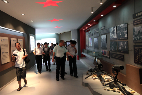 座谈后,开封文化艺术职业学院党委副书记张国斌一行又在学院领导的陪同下对我院的军工文化墙、国防科技展览馆和实验实训设施进行了参观。