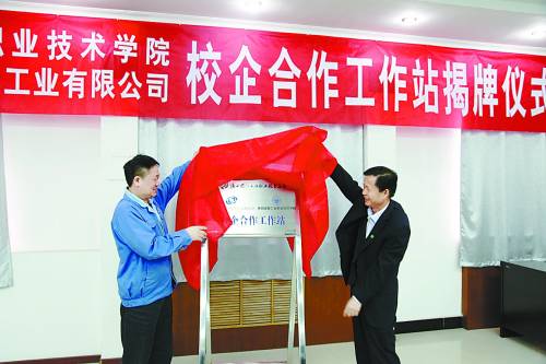 党委书记张文斌与兵器845厂领导为校企工作站揭牌