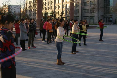 为缓解教师教学工作压力,丰富女职工的业余文化生活、提高女职工身体素质,院工会于12月3日下午在学院北区砺剑广场举行了第四届女职工呼啦圈比赛。