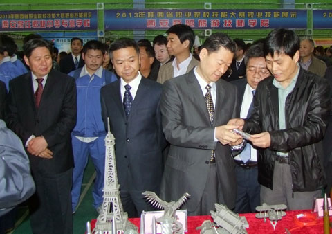 4月2日上午,“2013年陕西省职业院校学生技能展示展”在陕西工业职业技术学院举行。省人大教科文卫委员会主任杨希文,省委教育工委副书记、省教育厅厅长李兴旺,省教育厅副厅长蔡钊利等同志参加了展示展。