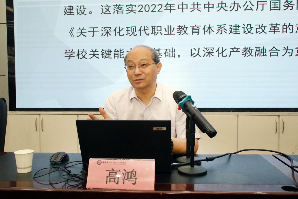 11月1日下午,国家教育行政学院研究员,学术委员会原主任、职业教育研究中心主任邢晖教授从职业教育发展的历史演变与担当、高职院校推高创优建设持续推进、当前推进中国式现代化对于职业教育的现实要求以及高校做好新时代职业教育的建议等几个方面,对于我校干部教师把握以产定教、提高职业教育适应性和吸引力的新要求,以及申报“新双高”、推动学校高质量发展、办好人民满意的职业教育具有重要的指导意义。