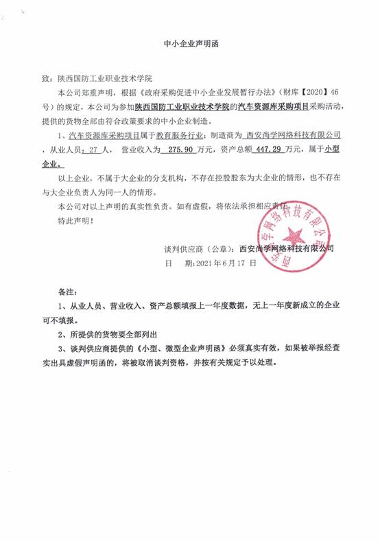 附:西安尚学网络科技有限公司中小企业声明函