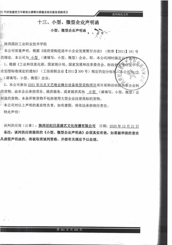 附:陕西世纪巨星演艺文化传播有限公司中小企业声明函
