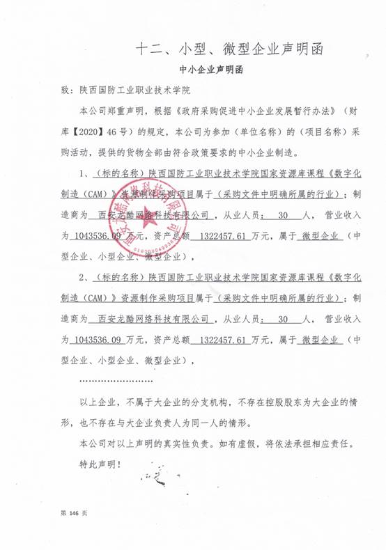 附:西安龙酷网络科技有限公司中小企业声明函