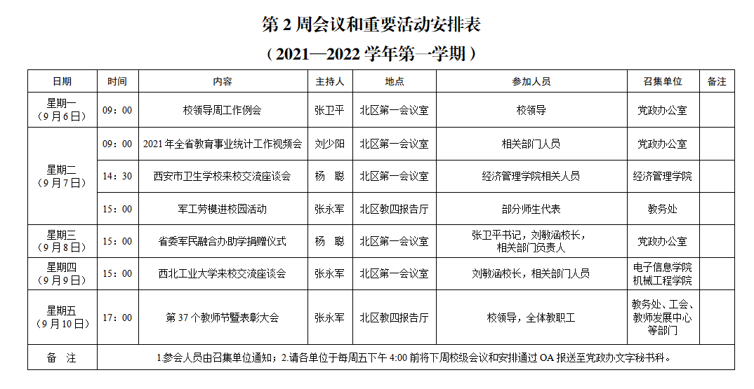 上一条:第3周会议和重要活动安排表(2021—2022学年第一学期)